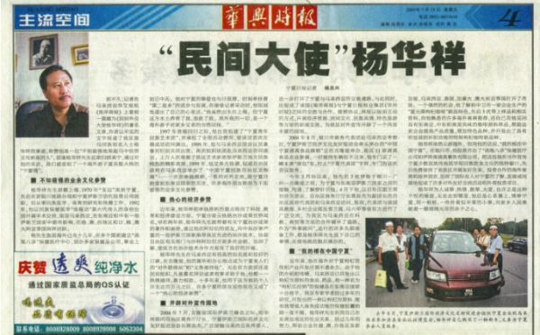 左图:2004年,汤瓶八诊名誉主席何起沄和汤瓶八诊传承人杨华祥共同主持银川汤瓶八诊传承体验馆开业。