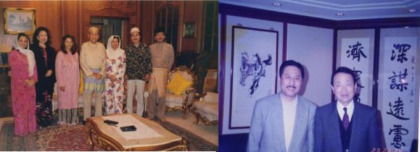 左图:1993年,汤瓶八诊传承人杨华祥应时任马来西亚最高元首端姑嘉法邀请,在皇宫以中国养生功和“汤瓶八诊疗法”为皇室家族调理。