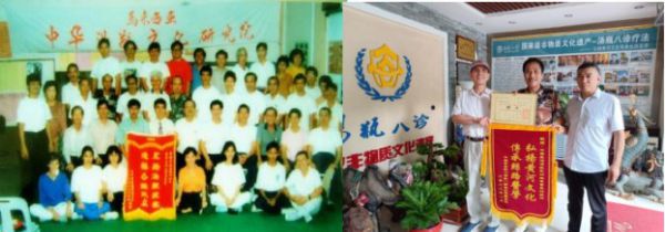 右图:1985年,经台湾执政当局批准,成立了“中国台湾汤瓶气功协会”,协会会长邱森源先生多次率团到访宁夏银川汤瓶八诊传承保护基地向杨华祥教授学习汤瓶气功法与汤瓶八诊异经奇脉灸